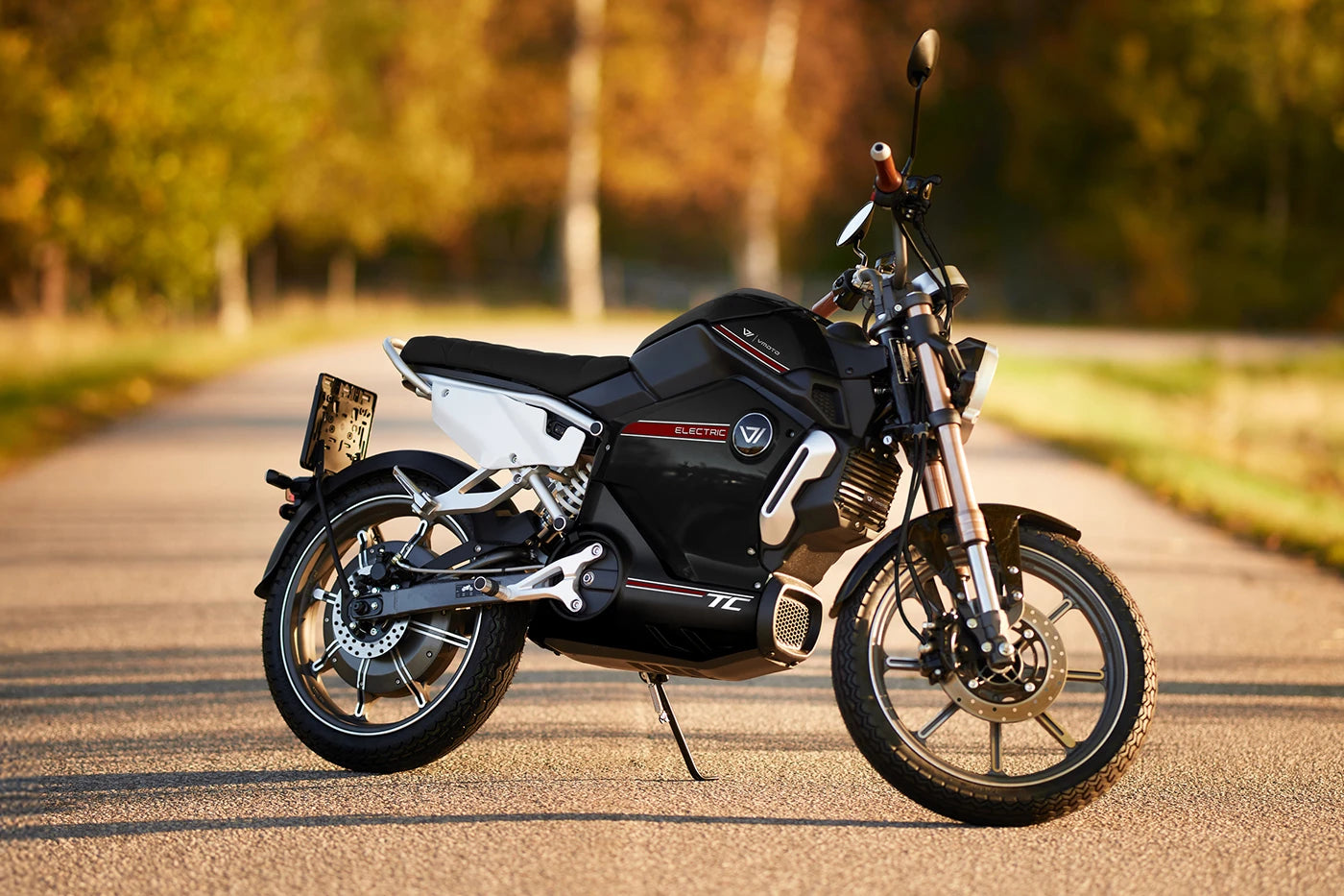 TC är en elmotorcykel som kombinerar den tidlösa charmen hos cafe racers med innovationen inom hållbar mobilitet. Dess design påminner om klassiska motorcyklar, med rena linjer, kromdetaljer och en vintagefärgpalett som förstärker dess retrokaraktär.
